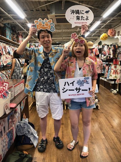 お二人ともはっちゃけた感じで、まだまだ沖縄の夏を満喫コーデをかもし出しお似合いですね(≧o≦)