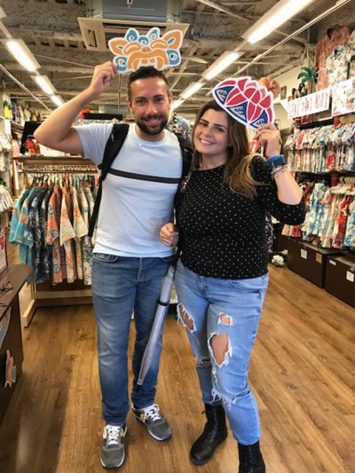 彼氏さんにもオソロはどうですか?と勧めてみましたが花柄はあまりお好みでないそうで、それなら沖縄の守り神!シーサーは?と案内すると…やっぱり!男性人気のデザインだけにイタリアメンズもすぐに気に入って頂きました(o^^o)b