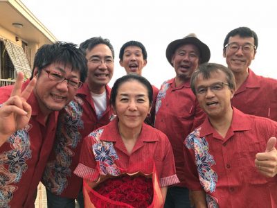 沖縄出身の方がいて、東京から皆様いらして、かりゆしウェアを着て頂いて…