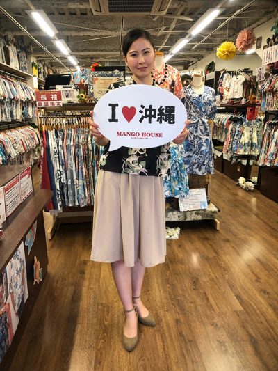 一通り店内のかりゆしウェアやワンピース、小物などをお連れのお客様と楽しそうに見たり、写真を撮ったりして、ハイ、パチリ!