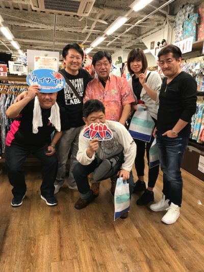 今回はご友人が還暦をお迎えになったので、観光中皆さんからサプライズで縁起の良い`かりゆしウェア’をプレゼントしたいとお食事前にご来店♪