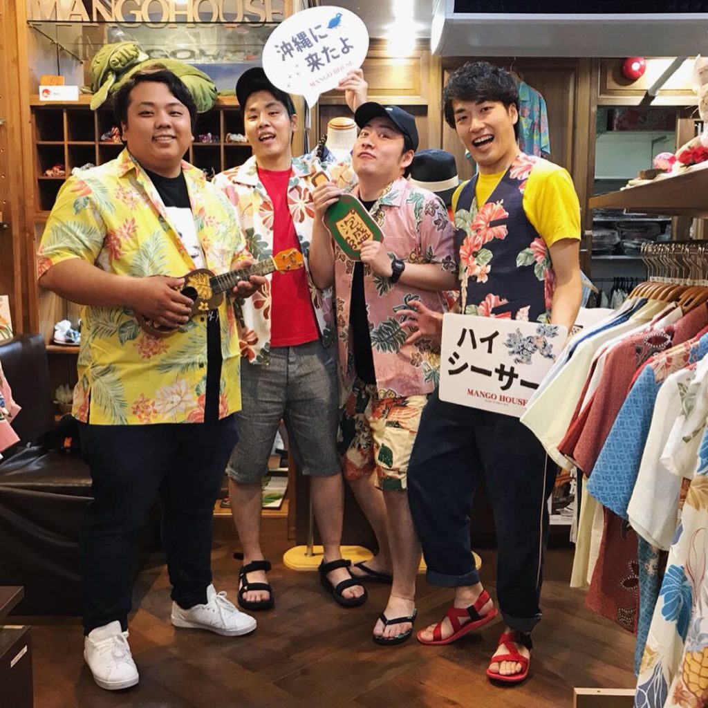 1番左のお兄さんが着ているのは、涼やかデイゴ/イエロー
