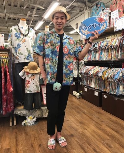 若くて細身のお客様でしたので、スリムフィットタイプの方でハイビスカス🌺やシーサー柄をご案内しましたが、ゆったり着たいのかレギュラータイプに興味津々!彼女さんらしきお連れの方と色々お話ししながらデザインチェック♪