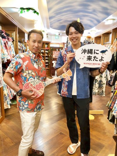 東京からお越しのお客様!「せっかくなのでジャケットと合うのが欲しくて」との事。いいですね~私は男性のジャケット姿めっちゃかっこいいと思っています。しかもアロハと着るならなおさら!選ぶのに、私まで熱はいっちゃいました。