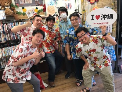地元は皆さんバラバラですがおきなわ観光楽しむためにかりゆしウェアをゲットしにご来店です!