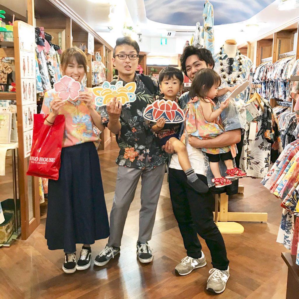 マンゴハウスのかりゆしウェア(沖縄アロハシャツ)で、ママは娘と、パパは息子とリンクコーデ♪