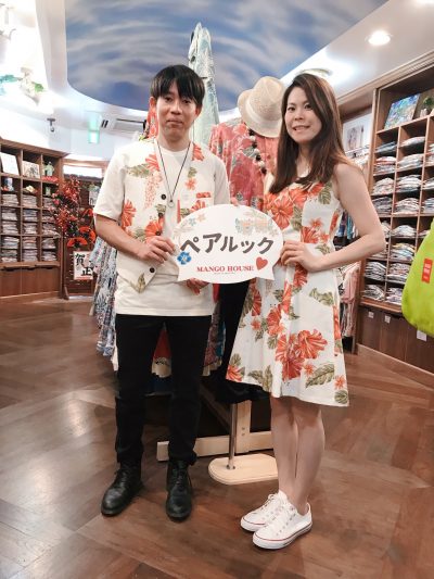 時期的に長袖がいいかな?とメンズ長袖“ロハスハイビー”を選んでからそちらとおソロのワンピースをご試着。