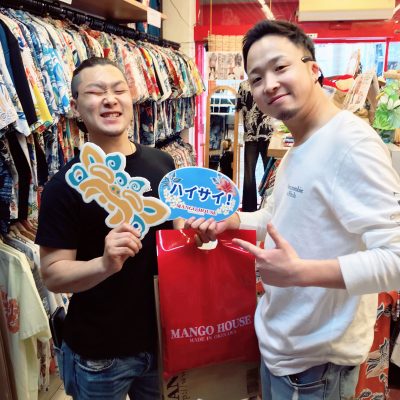 記念に沖縄アロハも欲しいとの事で当店を通りがかりに見つけて、ほぼほぼ即決で色違いお揃いの柄を選んで頂きました〜✨🤙