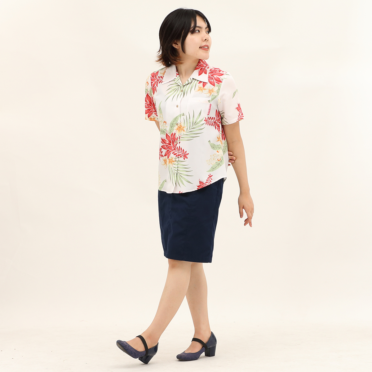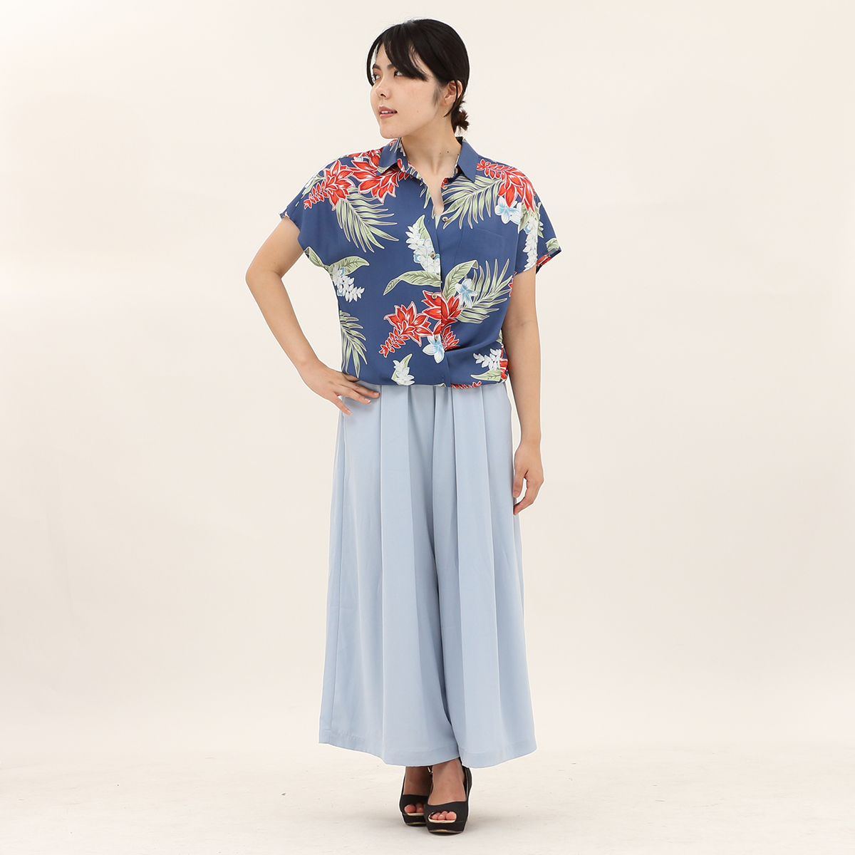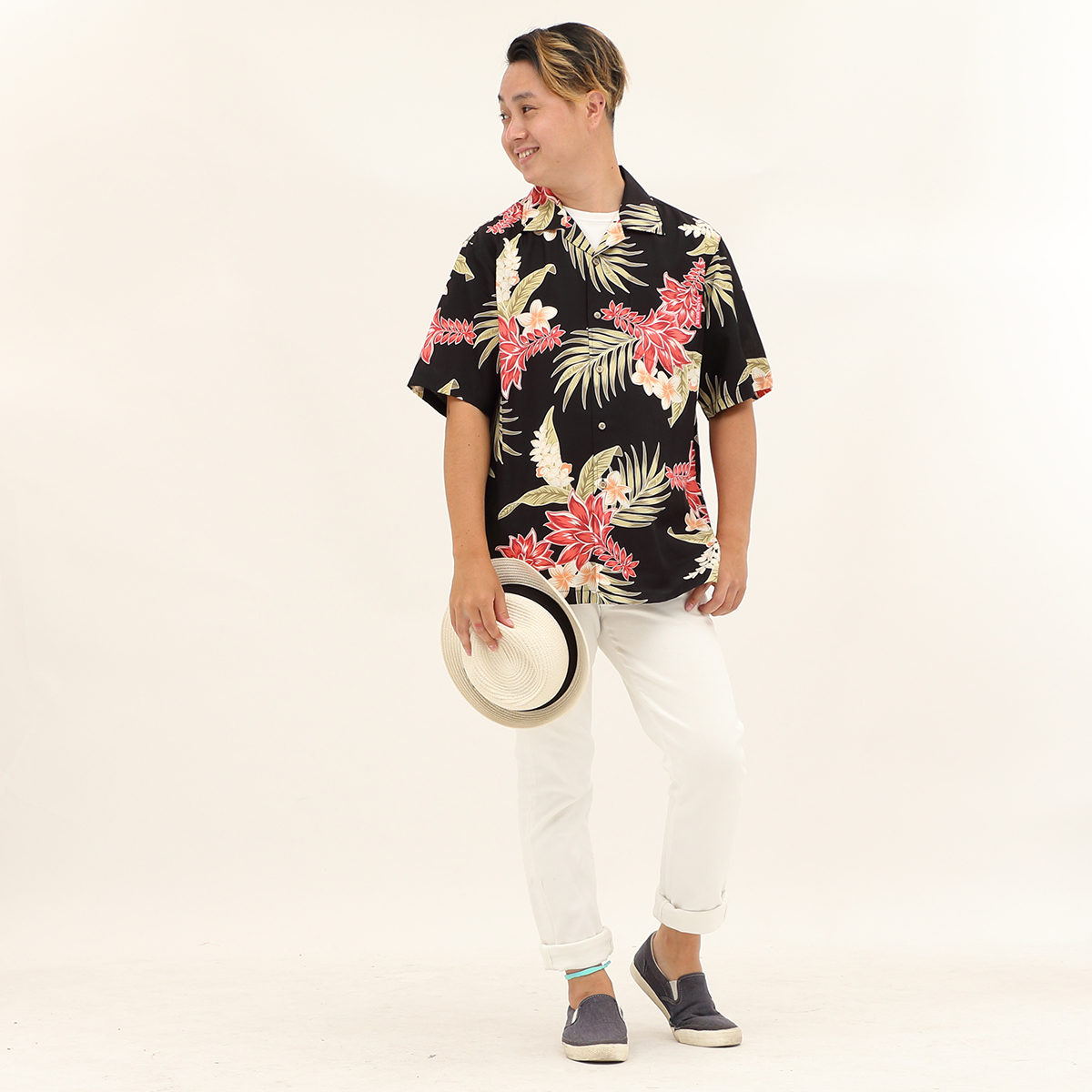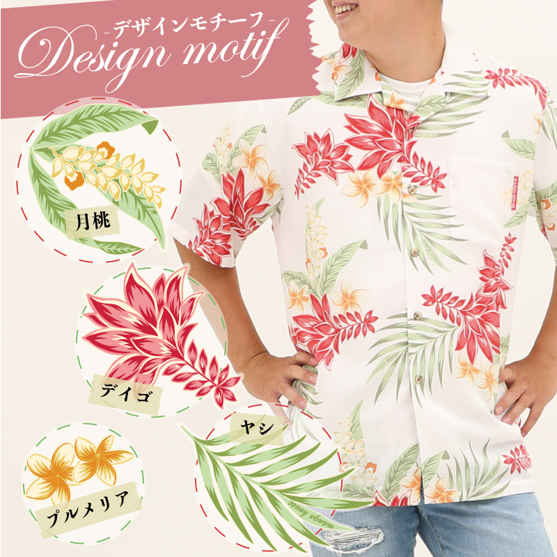沖縄の風に大胆になびく様子を表現した、沖縄アロハシャツ【フレッシュデイゴ】