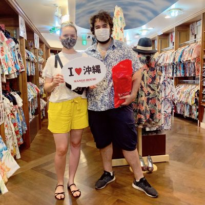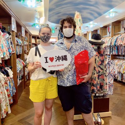 茨城県在住の外国人カップルさん記念に沖縄アロハシャツをゲット♪
