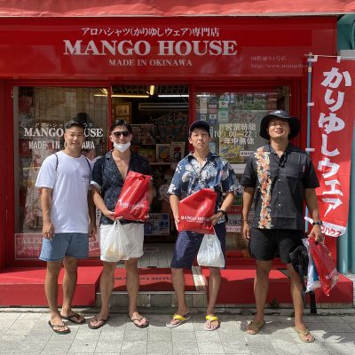 沖縄旅行をさらに満喫するために、沖縄アロハシャツ(かりゆしウェア)をお求めにいらしたお客様のご来店♪