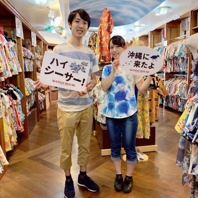 新婚旅行で東京からのお客様は記念に沖縄アロハシャツを選んでくださいました♪