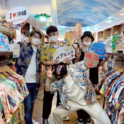 お昼に沖縄ソーキそばを食べて、早速国際通りを散策してるとアロハシャツの文字を見られてマンゴハウスにご来店して下さいました😆