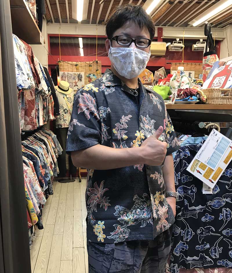 黒のシーサー柄を羽織った瞬間、ハマりましたね![]()