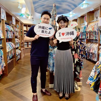 初尽くしのお客様、沖縄アロハシャツを着て沢山想い出作って下さいね~♪