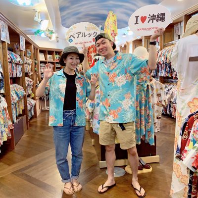 群馬県から新婚旅行でお揃いの沖縄アロハシャツをチョイス!そのまま着て観光♪
