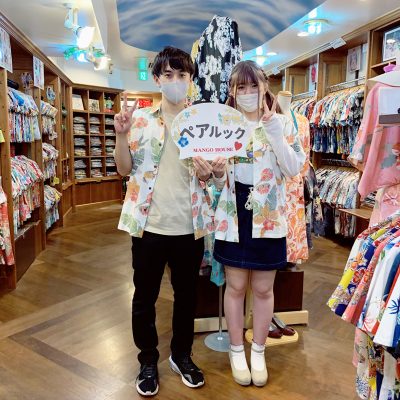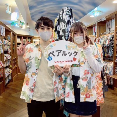 最初はシーサー柄を選んでいたのですが、色々見て試着されると三線とヤンバルクイナが入った柄に一目惚れされお揃いで選んで下さいました🥰