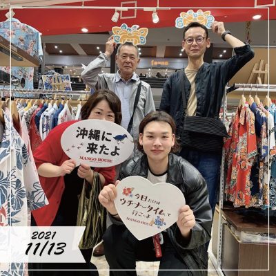 お父様がマンゴハウスのシャツを持ってらして、