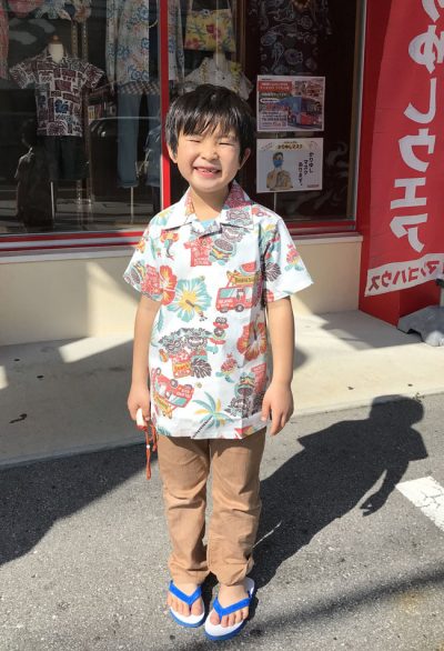 お店に入ってすぐに新作の、I Love シーサーアイランド を見つけて、試着して、サイズも大きめを選んで、良い感じです![]()