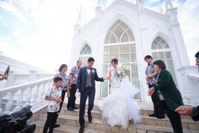挙式当日はお天気にも恵まれ、ご家族の皆さまも