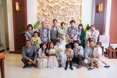 参列の方々が〝かりゆしウェア〟を着て、新郎新婦を祝うという✨