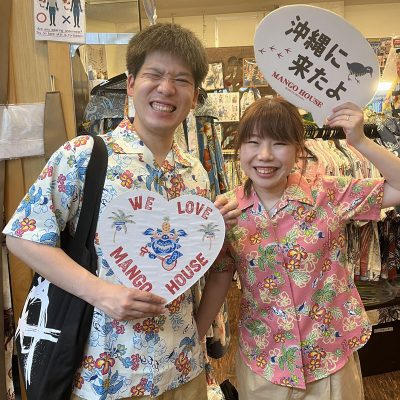一昨日到着し名護を観光して、本日お揃いのかりゆしウェアを探しにマンゴハウス国際通り三号店へ遊びに来て下さいました!