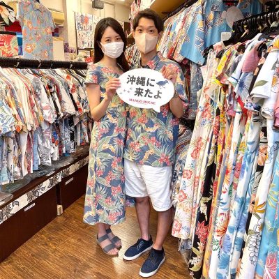 神奈川県からお越しのお客様、お揃いできる柄を求めてご来店!~早速着替えて沖縄観光♪~