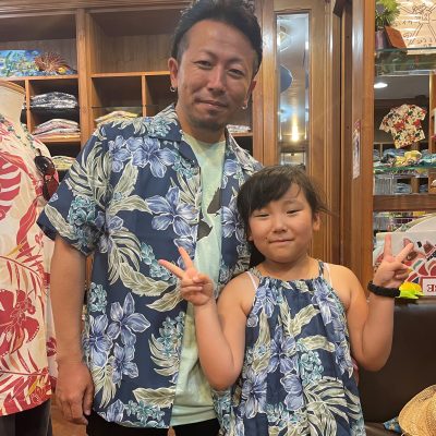 沖縄旅行の記念にパパとお揃いのかりゆしワンピースを♪