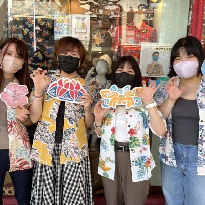 お友達で沖縄に観光に来ているそうで、明日着ていくものを探している際に折角なら沖縄に染まりたいと言う事で当店に来て頂けました!ありがとうございます🙇