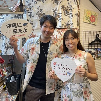 東京からお越しの柄シャツ好きなお客様、お揃いかりゆしコーデで沖縄満喫🌺