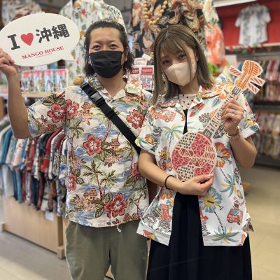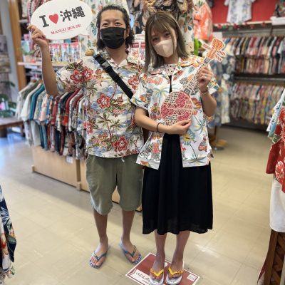 「5月に国際通りの店舗に行きましたよ〜!」と教えていただき、今回は国際通り店でゲットされたかりゆしを着て、奥様のかりゆしを選びにムーンビーチ前店にもご来店くださいました〜!国際通り店で買ったかりゆしがとっても良かったとお褒めの言葉も頂きました
