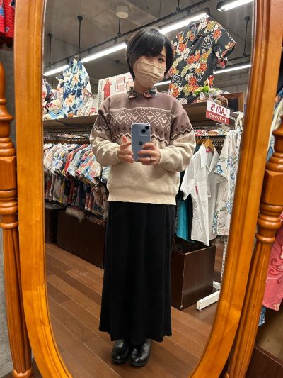 でもそれでもちょっと寒かったので上からセーターを着てかりゆしウェアの襟だけ出してみました。