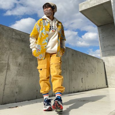 これはstaffイシキがよくやっているコーデなんですが、女性がやってもボーイッシュでかわいくない??と思ってやってみました。個性的でいい感じ♡