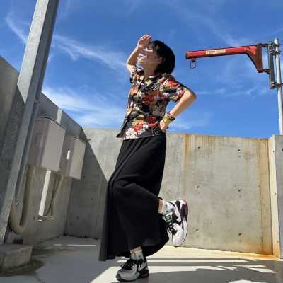 これまで紹介したコーデは一番上に着るものが長袖でしたが、逆に一番上が半袖のかりゆしウェアっていうのもかわいい!!