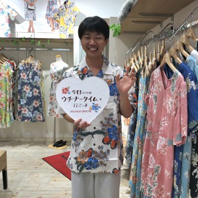 ゲットされたマンゴー柄に早速着替えてお写真まで