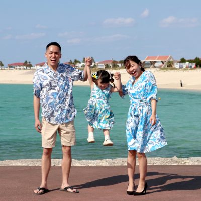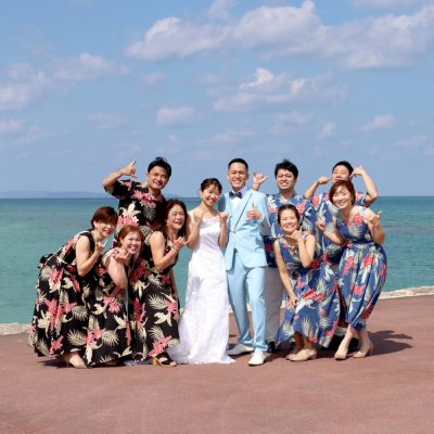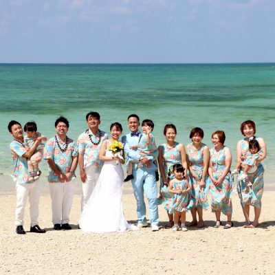 リゾートウェディング、沖縄の結婚式の服ってどんな感じ?かりゆしウェアで家族コーディネート。