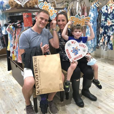 もうすぐ沖縄を離れるとのことで、 家族揃ってシャツとワンピースの新調です