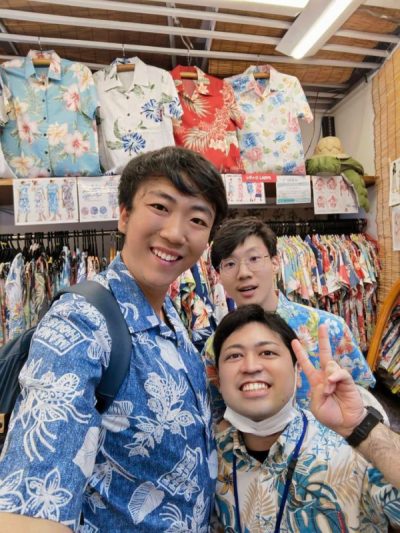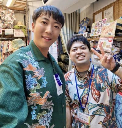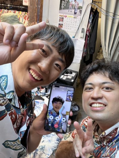 前回一緒だったお連れのお友達はもう帰国されたのですが、スマホのオンライン通話で一緒にお話ししながらおNEWのかりゆしウェアをGETです✌️✨