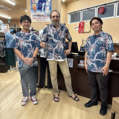 愛知県からお越しのお客様、スタッフとお揃いかりゆしウェアで記念写真📸