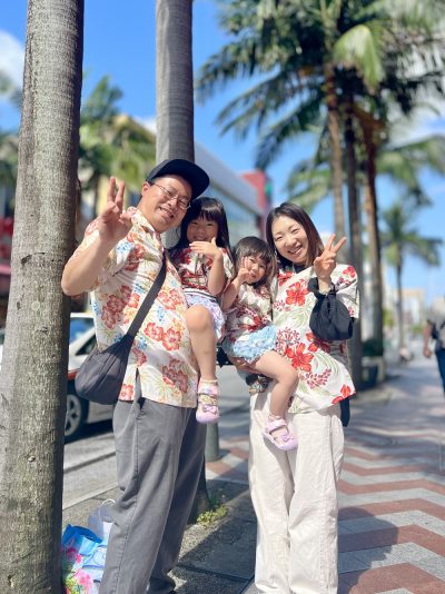 1番の楽しみは、子どもとマンゴハウスの沖縄アロハを着てお出かけする事!