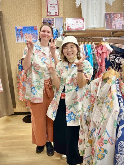 お客様の写真館2025.12.11沖縄に滞在中、2回もマンゴハウスへ!かりゆしウェアコーデを見せに来てくれました♪