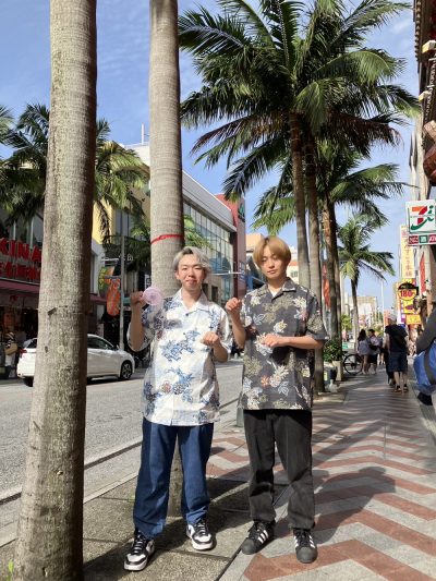 オシャレで素敵なお兄さんたちが、マンゴハウスでかりゆしウェアにお着替えしてくれました