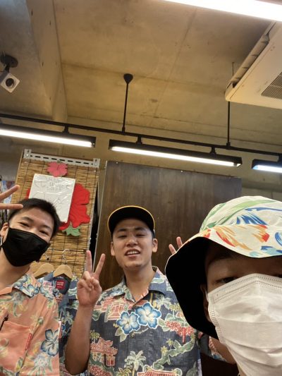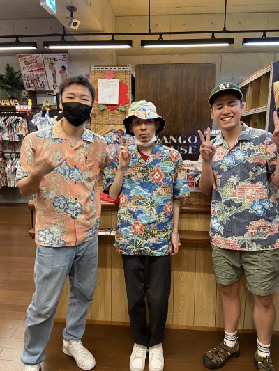 奈良のリピーター様、懐かしいデザインのかりゆしウェアを着てお店にご来店♪