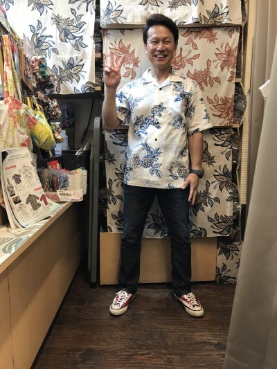 恩納店でご購入いただいたシーサー柄を着てお写真もありがとうございます❣️