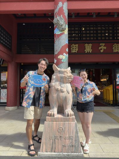 記念写真はシーサーの前でシーサーと一緒に3ショット📸