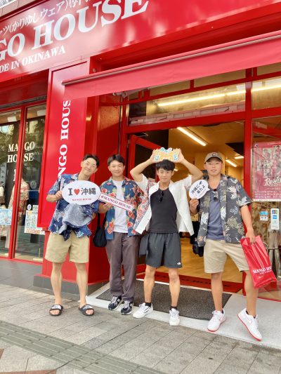 沖縄旅行で国際通りのマンゴハウスのかりゆしウェアに着替えてくれたお兄さんたちをご紹介♪