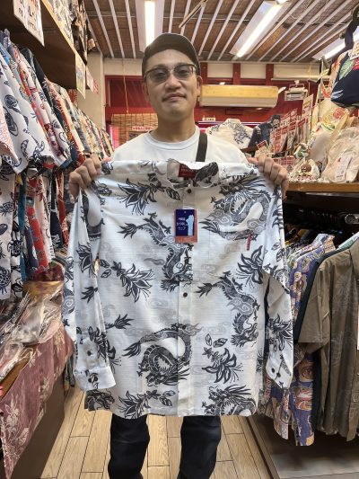 長袖総柄マオカラーに一目惚れして新作の#一番桜ドラゴン のオフグレーをGETしていただきました!