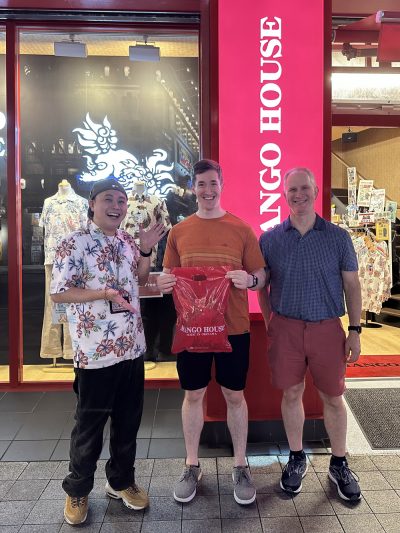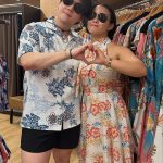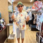 沖縄大好きなお客様、記念にマンゴハウスのかりゆしウェアをゲット!