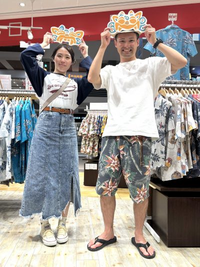 今回は、沖縄らしいハイビスカス柄のシャツを2点ご購入!