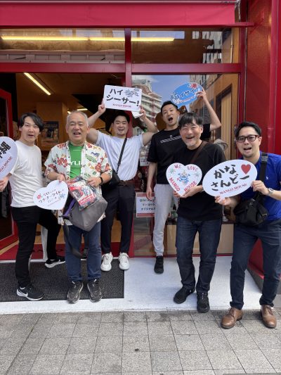 お決まりのヤンバルクイナ柄かりゆしに早速着替えて行くとのことで記念にお写真もハイシーサー📸✨